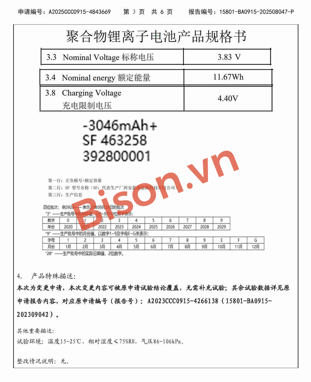 • Giấy tờ kiểm định CCC thương hiệu “Bison” đạt tiêu chuẩn Trung Quốc xem thêm bản full PDF toàn bộ tại đây