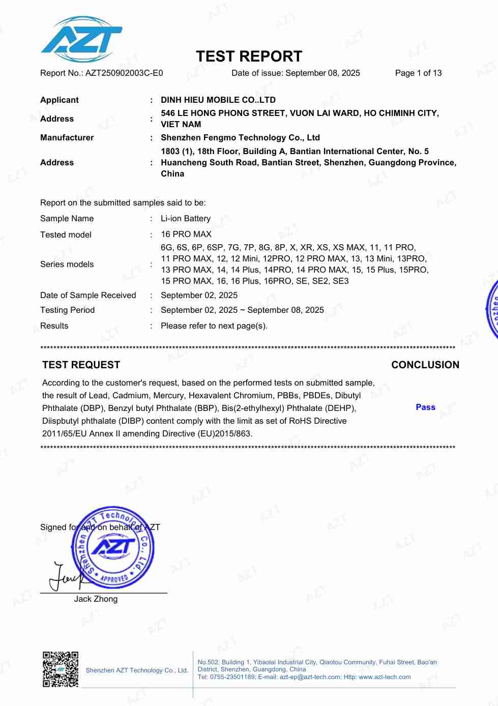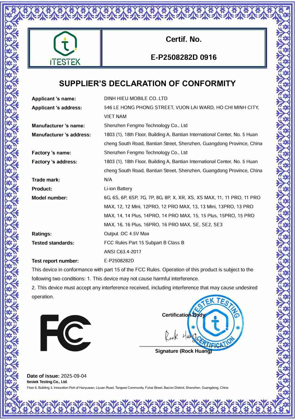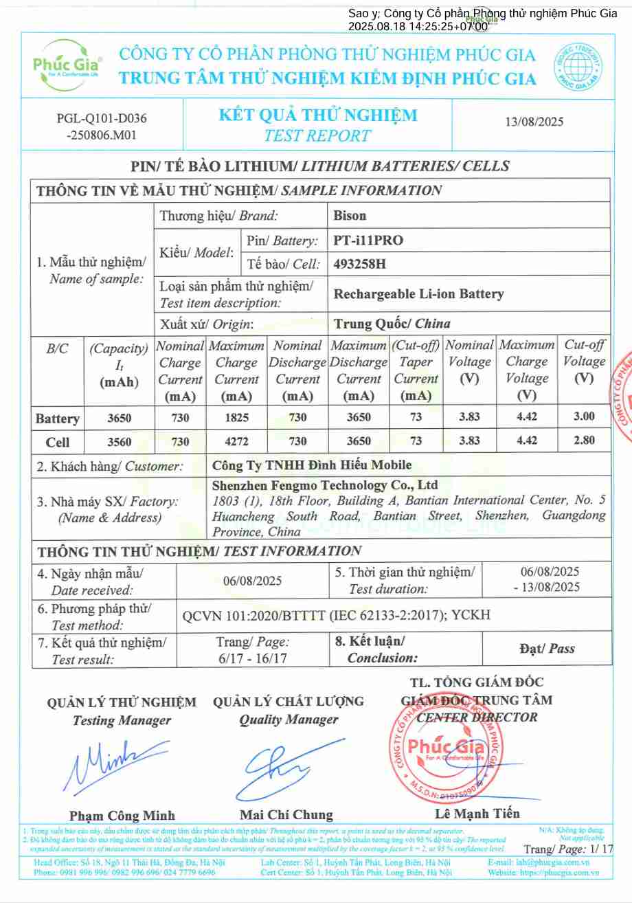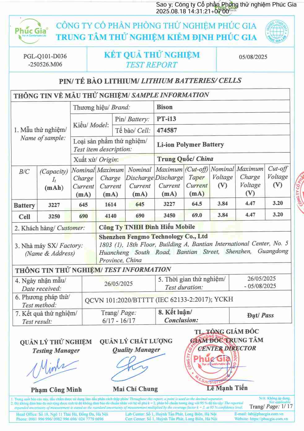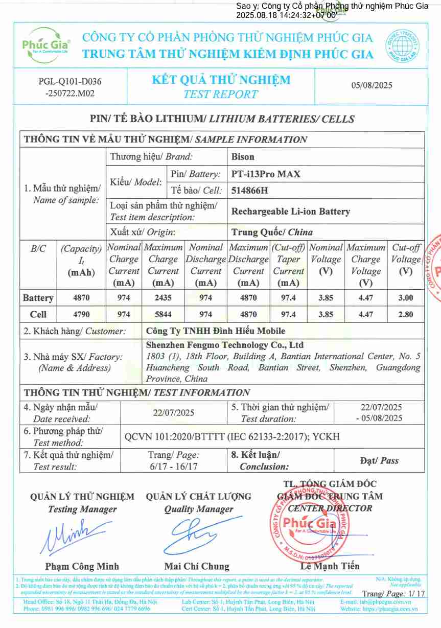 Xem thêm giấy tờ kiểm định full của Pin Bison iPhone 13, 13 Mini, 13 Pro, 13 Pro Max tại đây