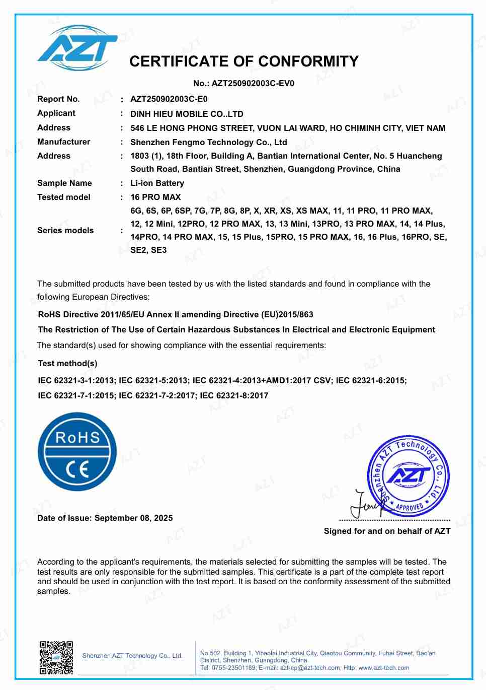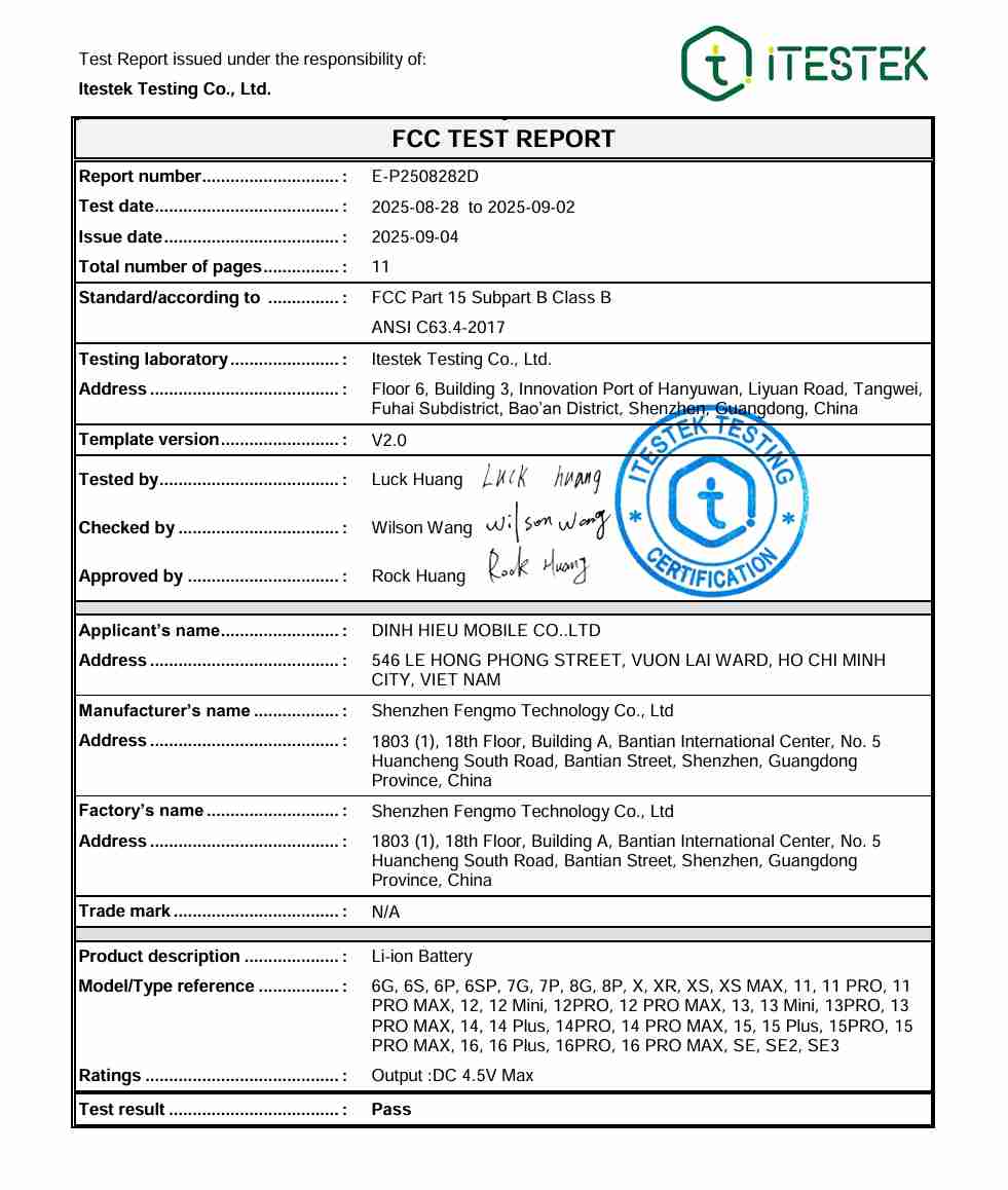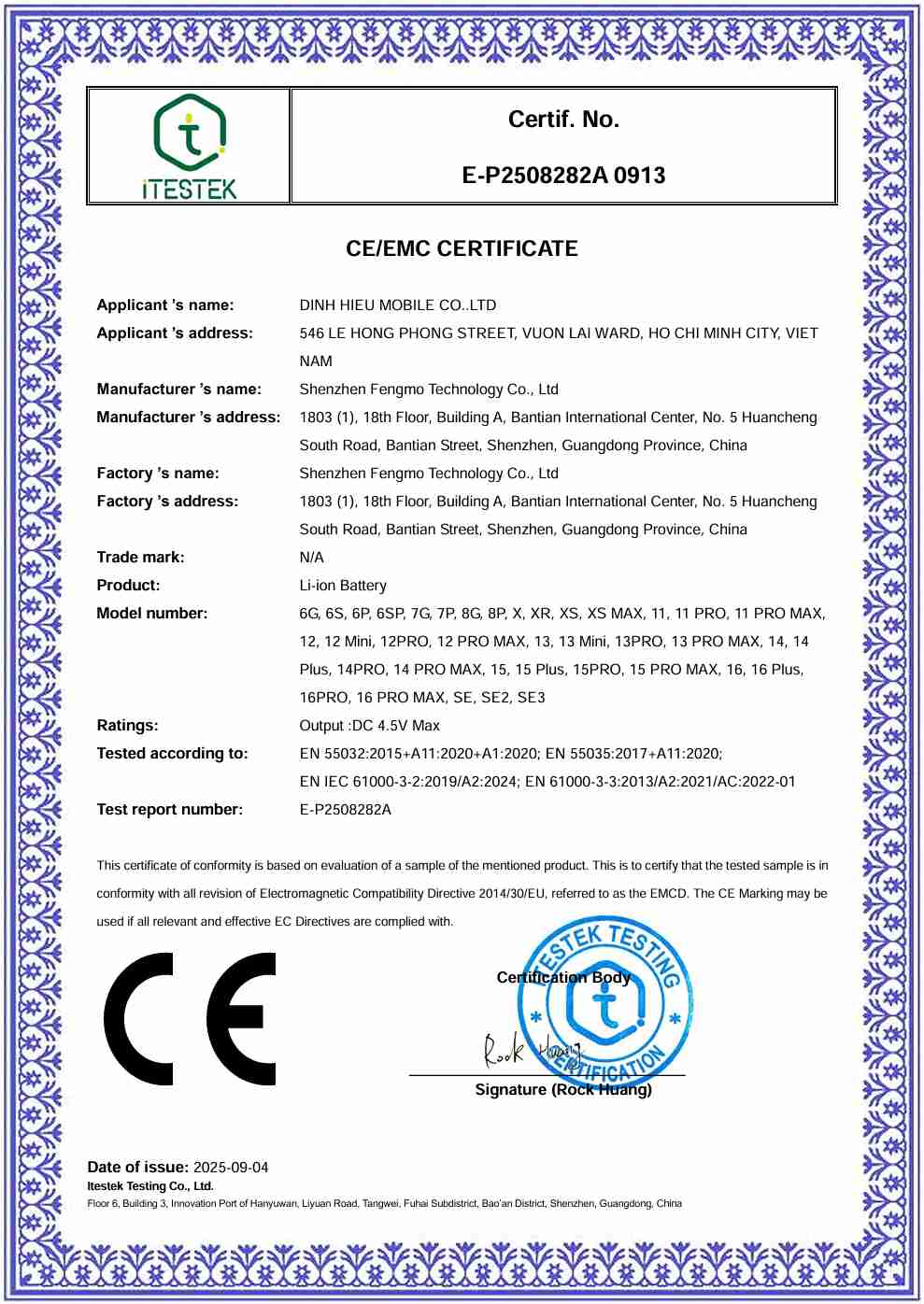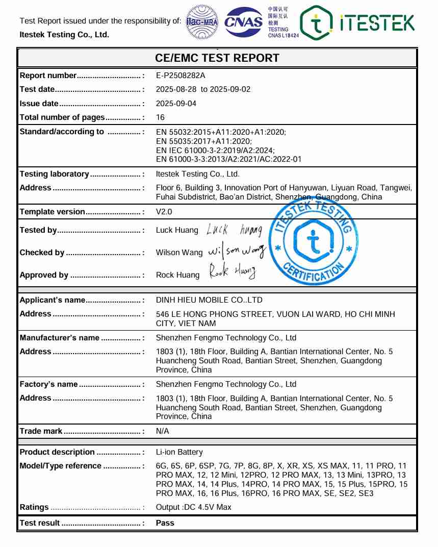 3/ Kiểm định TEST REPORT CE/EMC của nhà máy Shenzhen Fengmo Technology