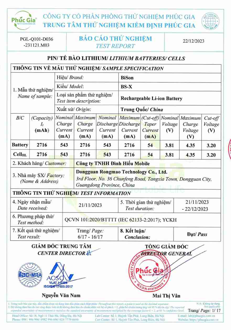 1/ TEST REPORT chất lượng pin Bison bởi AZT Technology