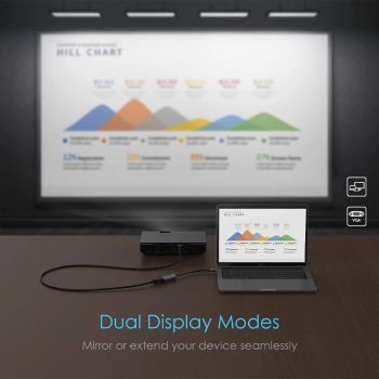 – USB C to VGA – Đầu ra có độ phân giải tối đa là 1920×1080 @ 60Hz (Độ phân giải cao đầy đủ), tương thích trở xuống với 1080i, 720p, 576p, 480i / 480p.