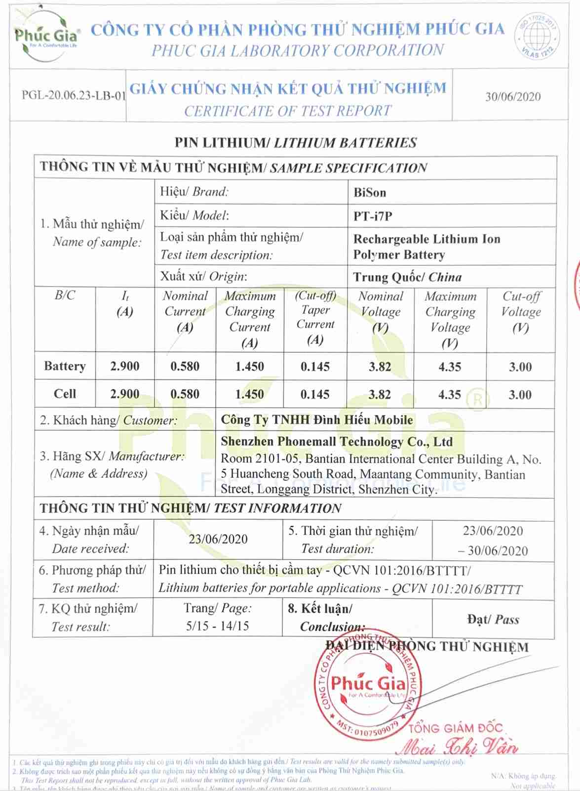 Xem thêm giấy tờ kiểm định full của Pin Bison iPhone 7 Plus, 8 Plus, SE 2020, SE 2022 trở về trước tại đây
