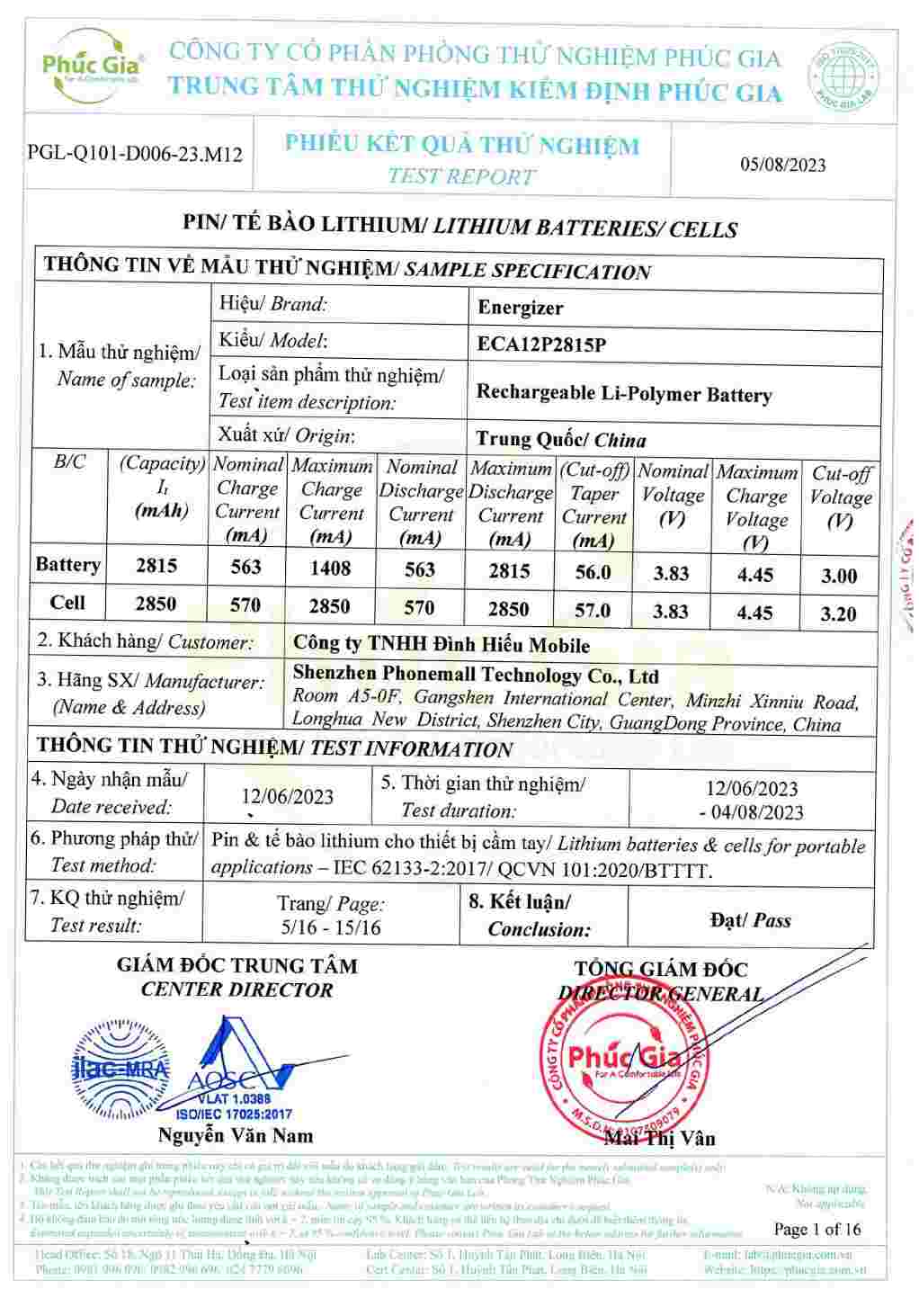 • Giấy tờ kiểm định Pin Energizer Ultimate Replacement Mobile Battery đạt tiêu chuẩn Việt Nam xem thêm bản full PDF toàn bộ tại đây